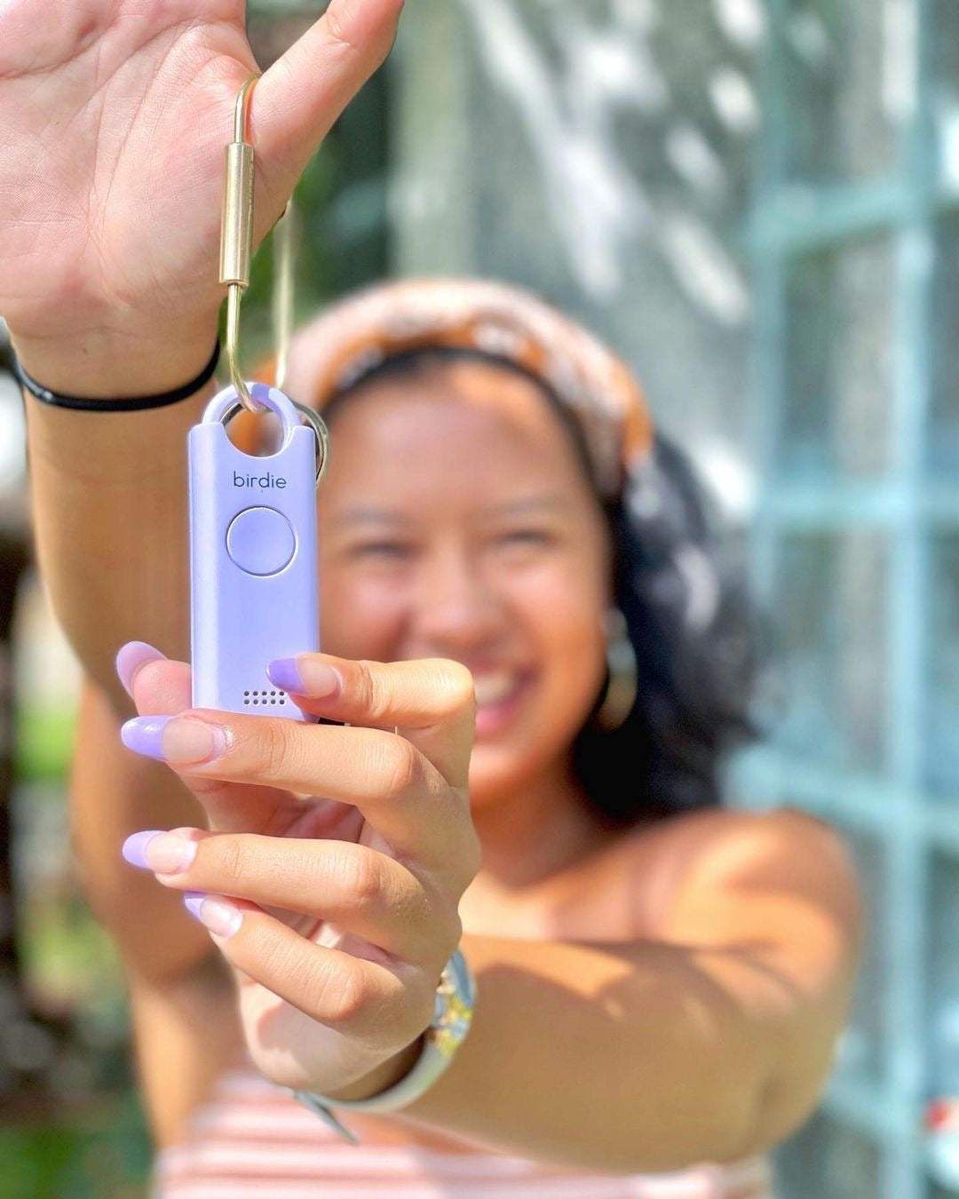 Meet the personal safety alarm made for women, by women. This colorful alarm has a 130db alarm and bright strobe light designed to deter an attack. Light-weight with a pop of color, the Birdie personal safety alarm is easy to spot in your bag. To help deter an attack, activate the LOUD 130db siren and flashing strobe-light. Birdie comes with a solid brass keychain to transition with you from day to night––around town, on the trails, across campus, and out at night.
