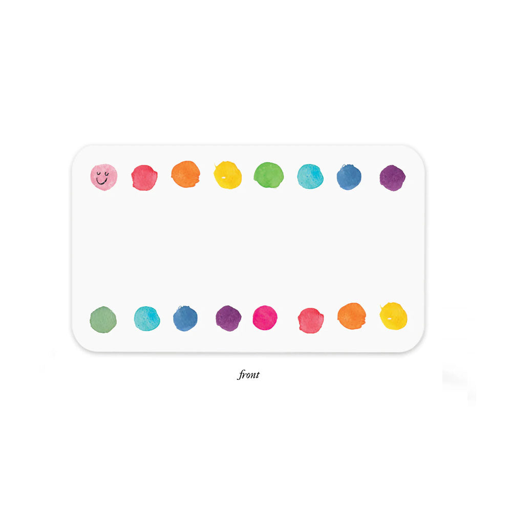 This box of fifty-five sweet little chubby cards with rainbow colored dots are cozily boxed together for you to use unsparingly as place cards, surprise notes, lunchbox love... It's like getting to use the good china every day - don't just save them for special occasions, there are 85 for pete's sake!