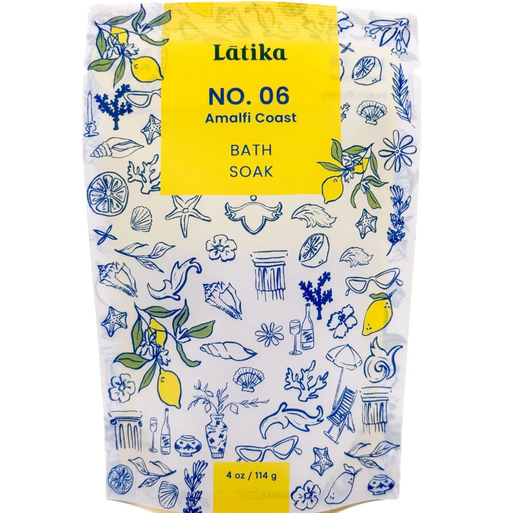 Inspired by the sun-drenched Mediterranean, this refreshing blend of citrus and oceanic notes evokes the beauty of coastal escapes. Packaged in a beautiful Italian vacation-inspired pattern bag, this milky-soak single-use pack is a delightful addition to your shelves! MILK BATH SOAKS Immerse yourself in a soothing, skin-nourishing retreat with Latika’s Fine Fragrance Milk Bath Soaks. Made with coconut milk, these soaks soften and calm the skin, while elegant fragrances elevate your bath into a luxurious sensory escape.