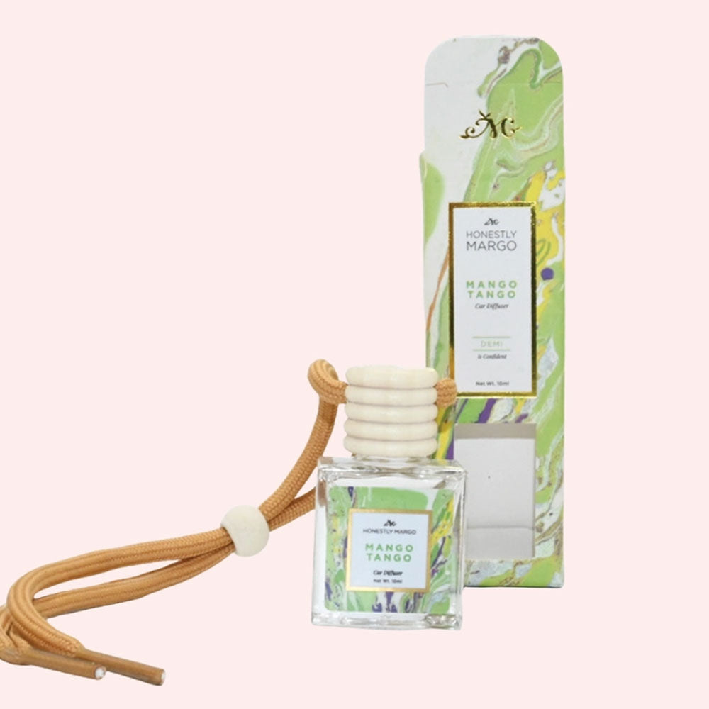 The Mango Tango Car diffuser has the scent of fresh mango, orange, and peach with a hint of vanilla and coconut - the perfect scent to transform your car rides into a paradise moment. Paraben and Phthalate free. Hang or use the included vent clip.