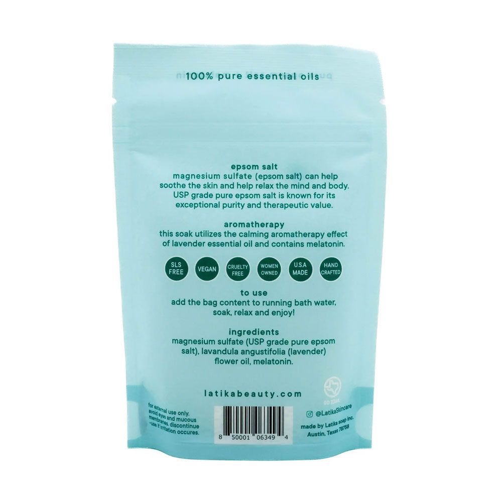 Epsom salt - magnesium sulfate (epsom salt) can help soothe the skin and help relax the mind and body. USP grade pure epsom salt is known for its exceptional purity and therapeutic value. aromatherapy - this soak utilizes the calming aromatherapy effect of lavender essential oil and contains melatonin.
