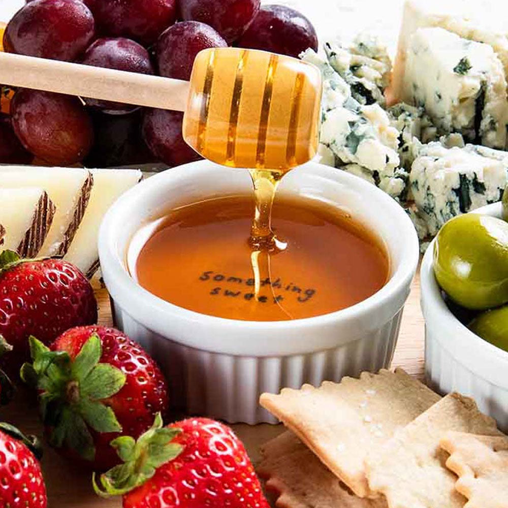 Wooden Honey Dipper: Recommending honey as your 'something sweet', we've included a beech wooden, 6" honey dipper with a varnish finish- perfect for drizzling over that cheese!