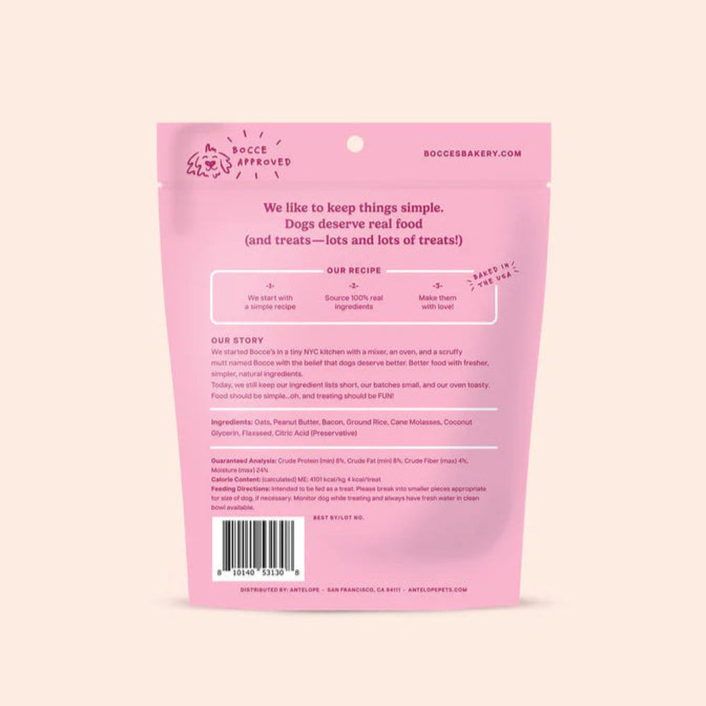 Ingredients: Oats, Peanut Butter, Bacon, Ground Rice, Cane Molasses, Coconut Glycerin, Flaxseed, Citric Acid (Preservative)