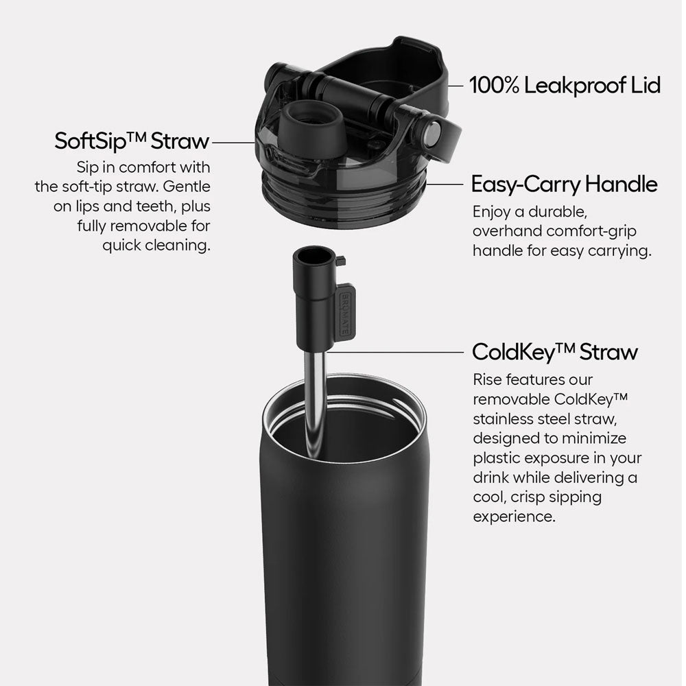 Rise is your new go-to for everyday hydration. The leakproof MagFlip™ lid locks in every sip, BevGuard™ insulation keeps drinks cold, and the covered straw protects your bottle on the go. Sip with the ColdKey™ metal straw so plastic isn’t sitting in your water all day, or remove it to chug from the covered SoftSip™straw - your choice. Plus, Rise 25oz is cup holder friendly, so it’ll fit perfectly in most car cup holders. Finished with a swappable silicone sleeve to prevent dents and dings, Rise simplifies hydration.