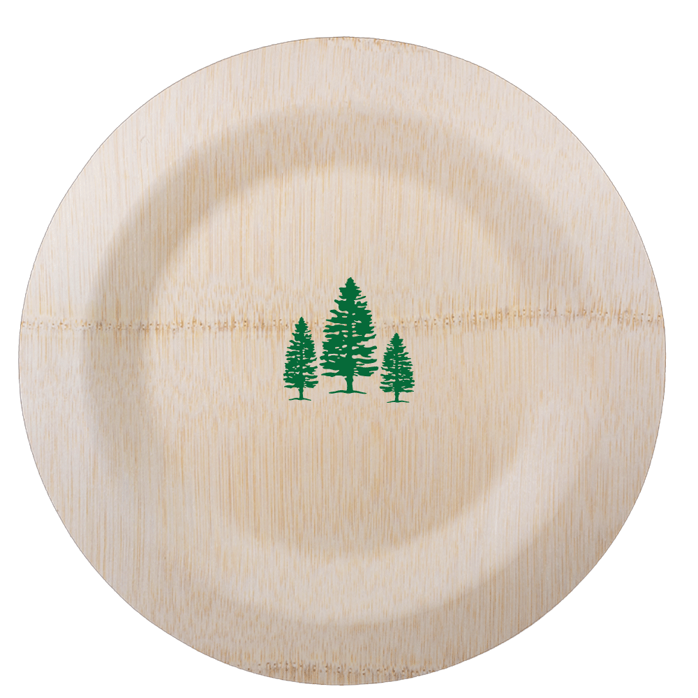 These round bamboo plates are naturally durable, lightweight and heat-resistant. Made from a renewable, sustainable and biodegradable blend of materials. Printed in the United States. Package of 10 dinner plates.