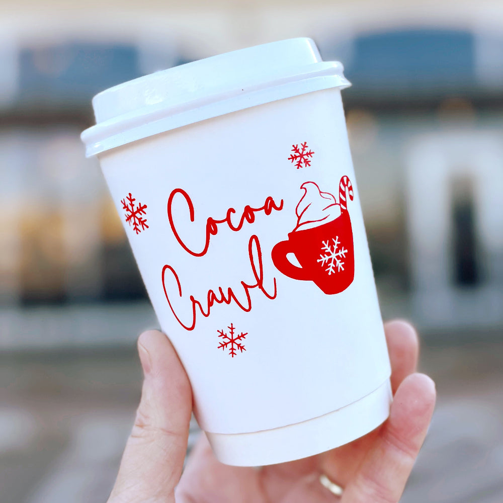 It's time for a Cocoa Crawl Y'all! These double-wall insulated paper cups are perfect for taking a stroll around the neighborhood to look at Christmas lights or for a holiday party. They're also great for hot beverages on-the-go or as a gift. They're cute alone, but they are really impressive when paired with our hot chocolate and gourmet marshmallows. Made and screen printed in the USA.