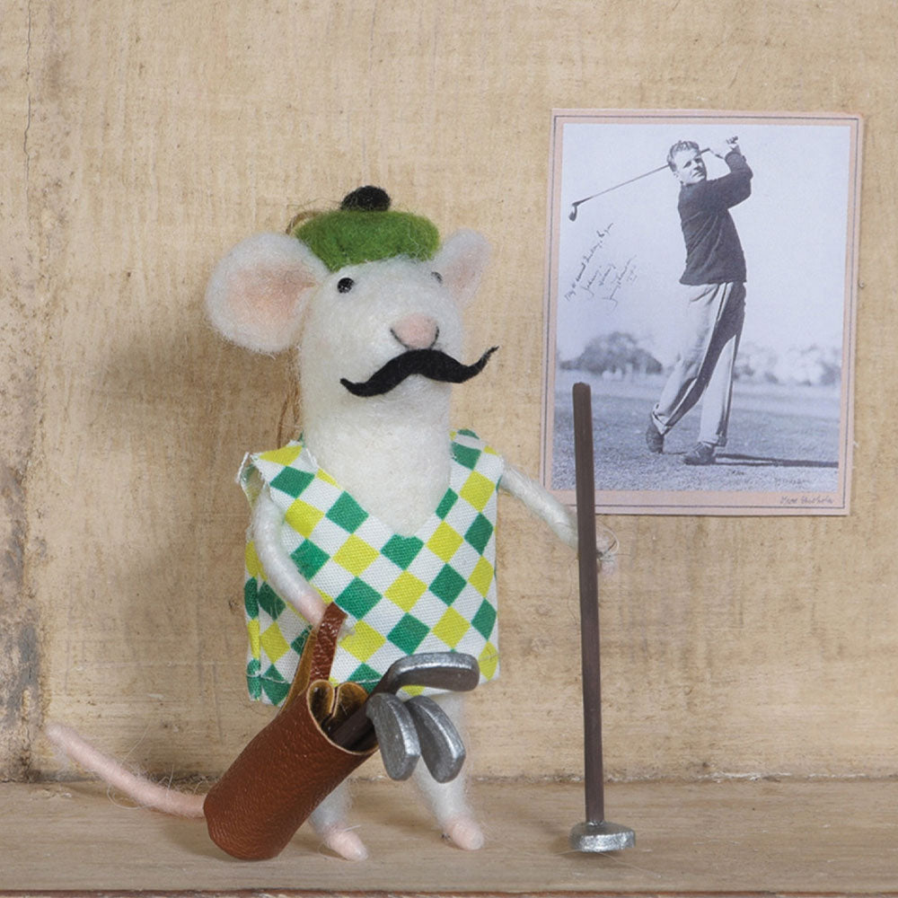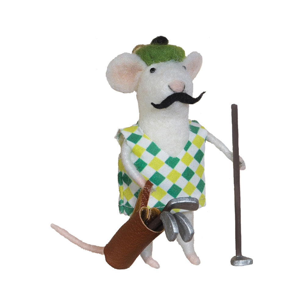 Introducing the Golfer Mouse Felt Ornament, the perfect addition to your holiday decor. Crafted from soft felt, this ornament features a charming golfer mouse design. Bring a touch of whimsy to your home and delight your guests with this unique decoration.