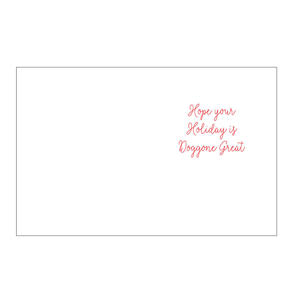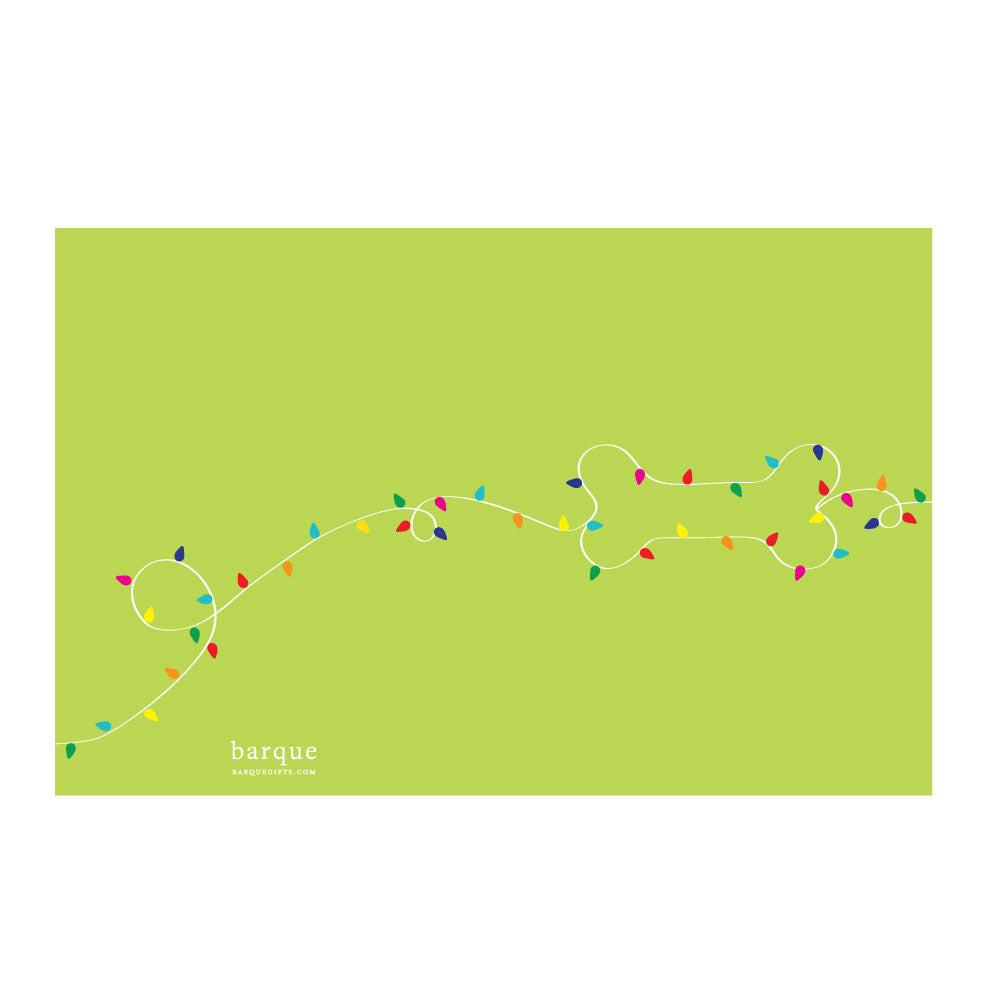 A petite, playful holiday card with dog bone outlined in Christmas lights. Box of 20 folding cards and white envelopes. Printed on 100# white cardstock in Lubbock, Texas.
