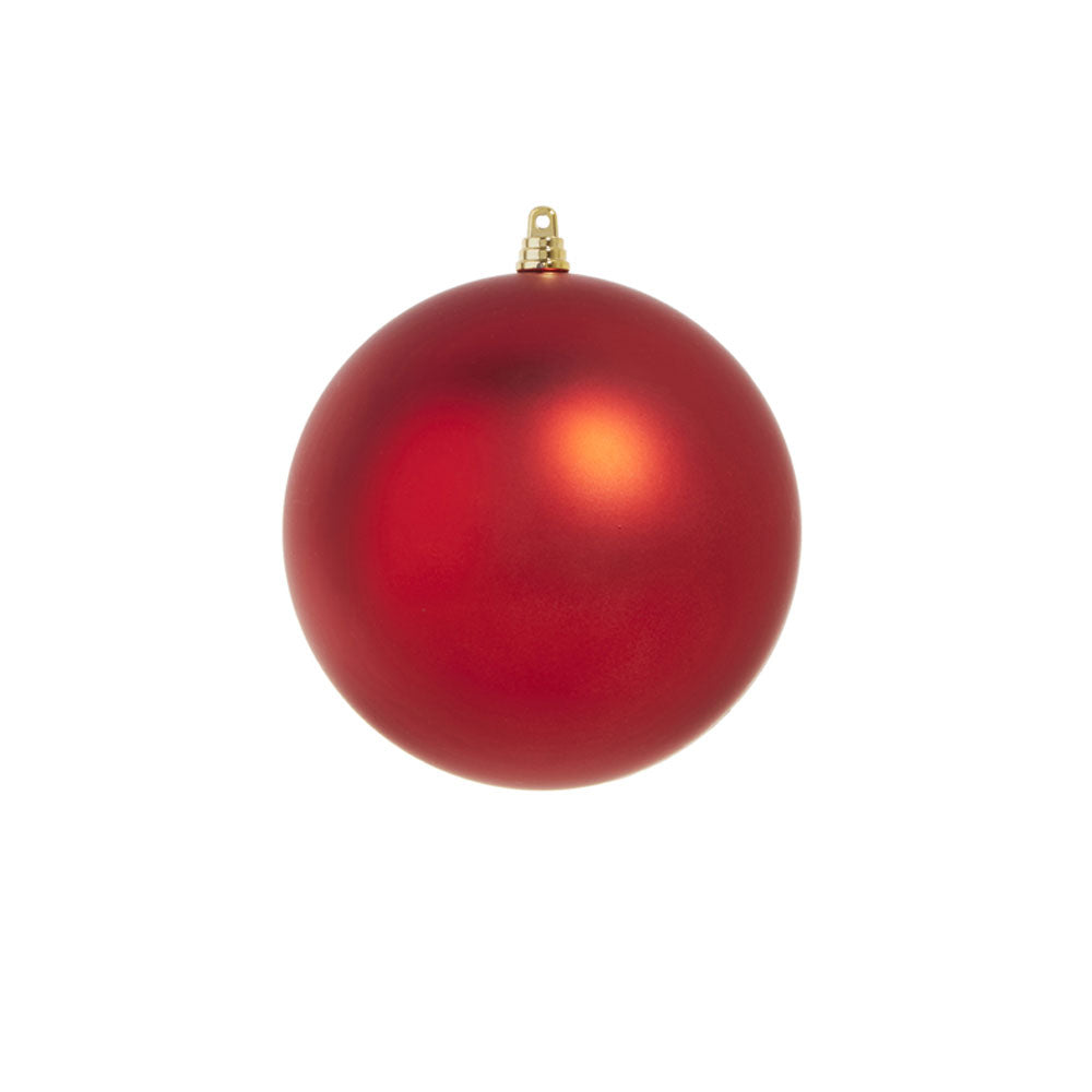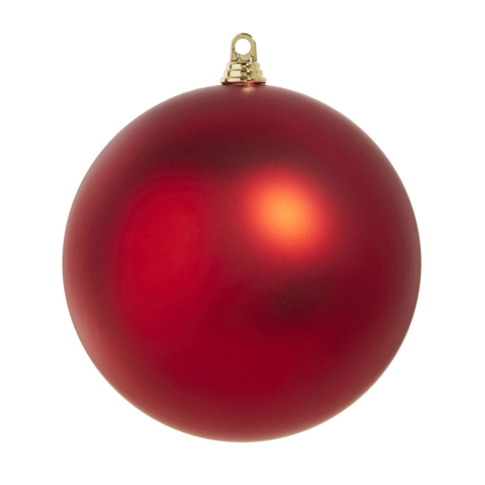 These matte red holiday ball ornaments will look great with any holiday decor. They're durable too because they are made of plastic. Available in two sizes - 6 inch and 10 inch diameter.