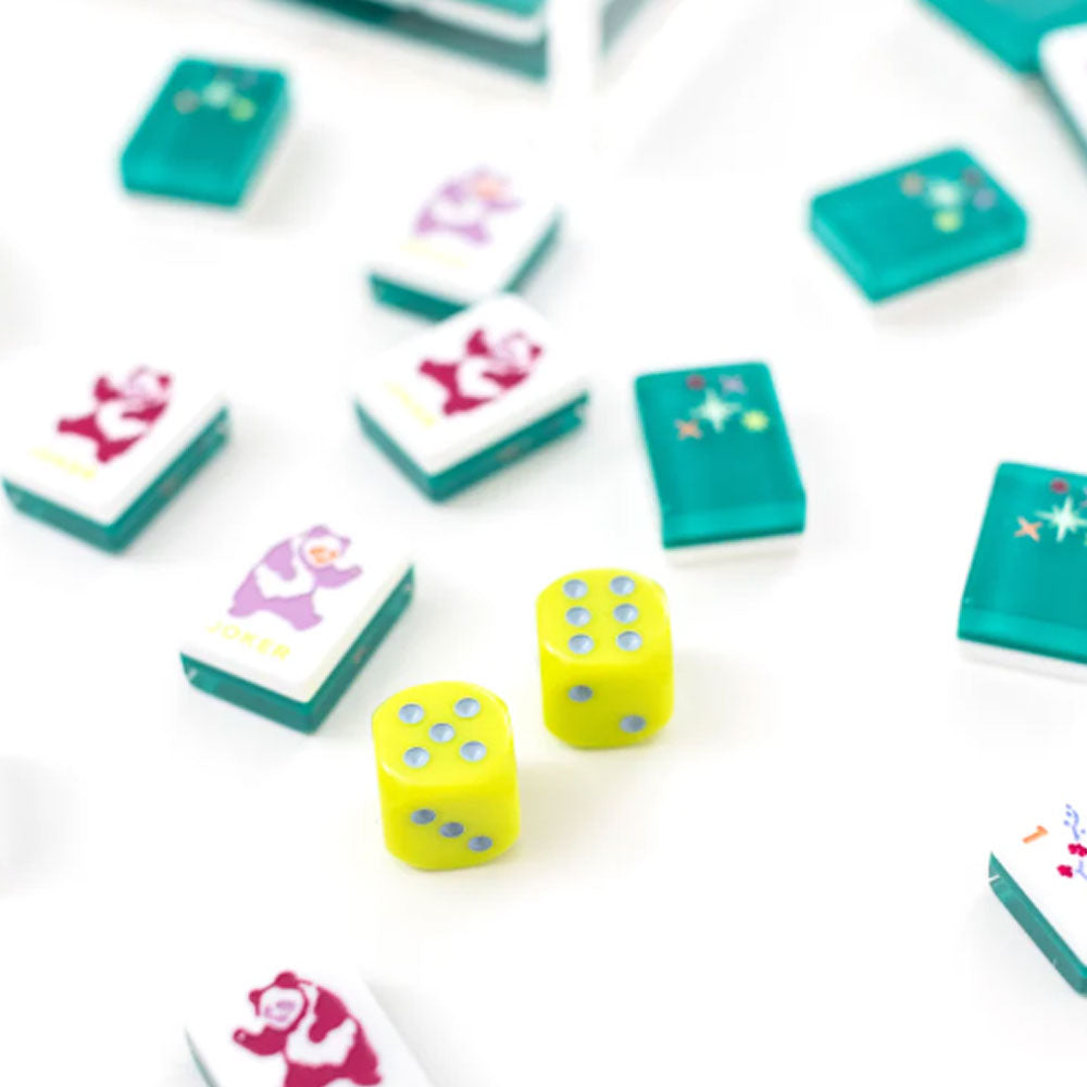 Each tile set comes with two dice and a tile guide that shows all of the tile designs on one side and some things to remember about the game of mahjong on the other side, just in case you need a quick refresh.