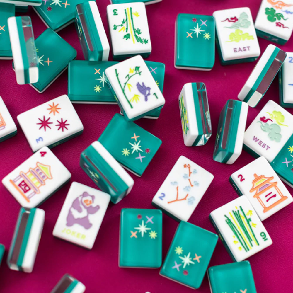The East Meets West tile set combines lively, vibrant colors with our stunning designs. Featuring numbered flowers, this set caters to both American mahjong and traditional Chinese styles of play.