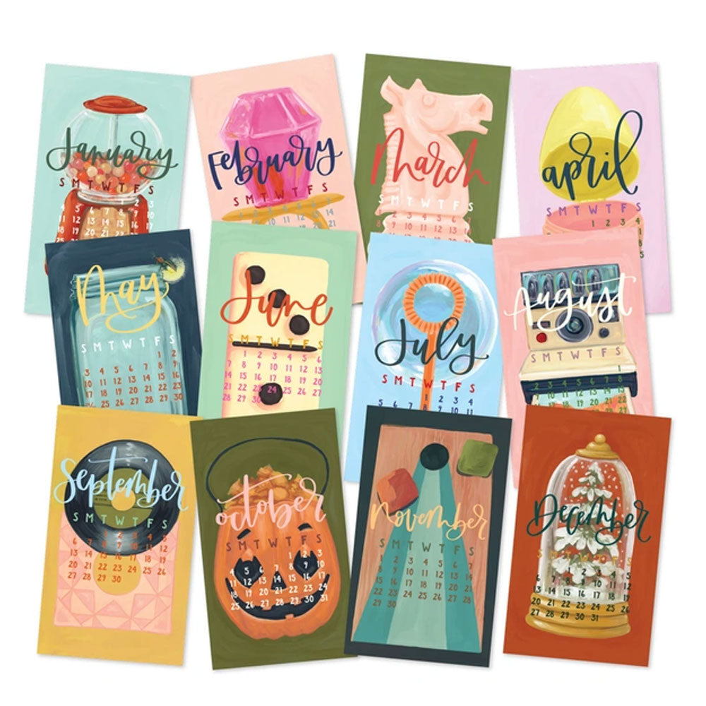 Keep a touch of nostalgia on your desk with the Forever Young 2026 Mini Desk Calendar. Featuring 12 months of hand-painted retro-inspired illustrations, this calendar brings a playful and vintage feel to your workspace. Each page is double-sided, with six total pages, and rests in a custom wooden base for easy display. From classic gumball machines to rotary phones, each month showcases a charming reminder of days gone by. A fun and functional way to stay organized, this mini calendar makes a great gift for anyone who loves vintage style and a little throwback charm.