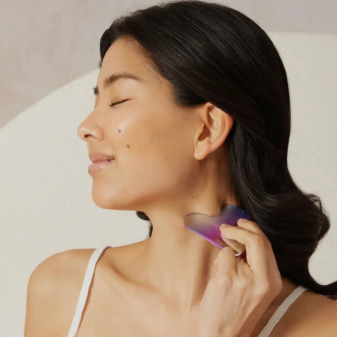 The stainless steel material provides durability, is easy to clean, and can soothe the skin due to its coolness, while the Gua Sha technique itself helps to stimulate the release of toxins and support the body's natural healing processes.  Available in stainless steel and iridescent finish - each sold separately.