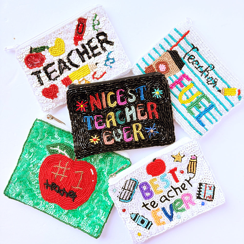Only the cutest little beaded coin bags for any teacher in your life. Available in three styles: Teacher Rainbow, Teacher Fuel, and Teach Love Inspire