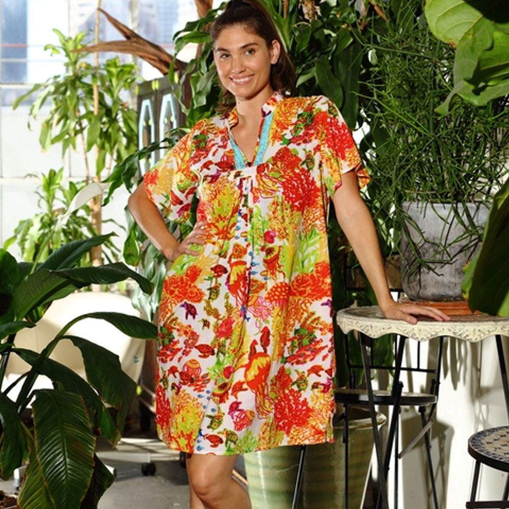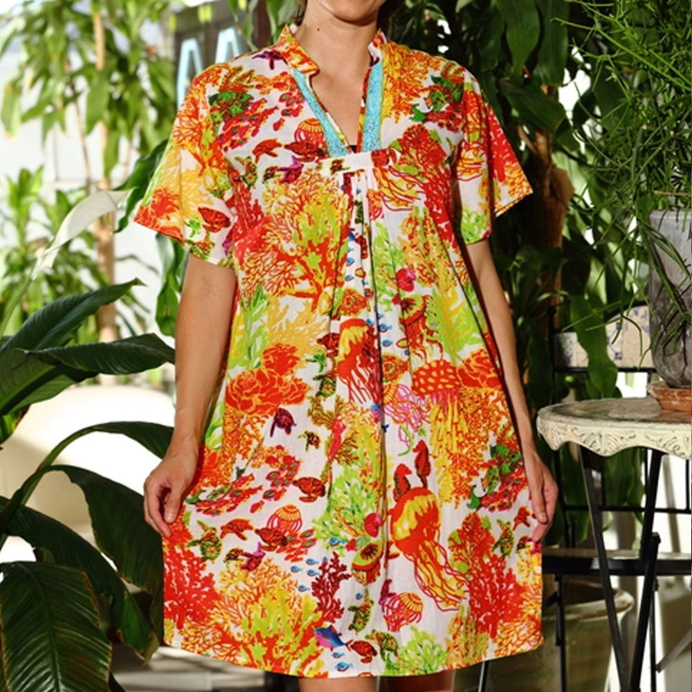 Step into summer style with this adorable papaya coral beaded neck dress. Made from 100% cotton, it's breathable and comfortable for those hot, sunny days. The decorative beaded neckline adds a playful touch that's perfect for casual outings, beach trips, or weekend adventures. Light, breezy, and undeniably cute, this dress is your go-to piece for effortless warm-weather fashion.