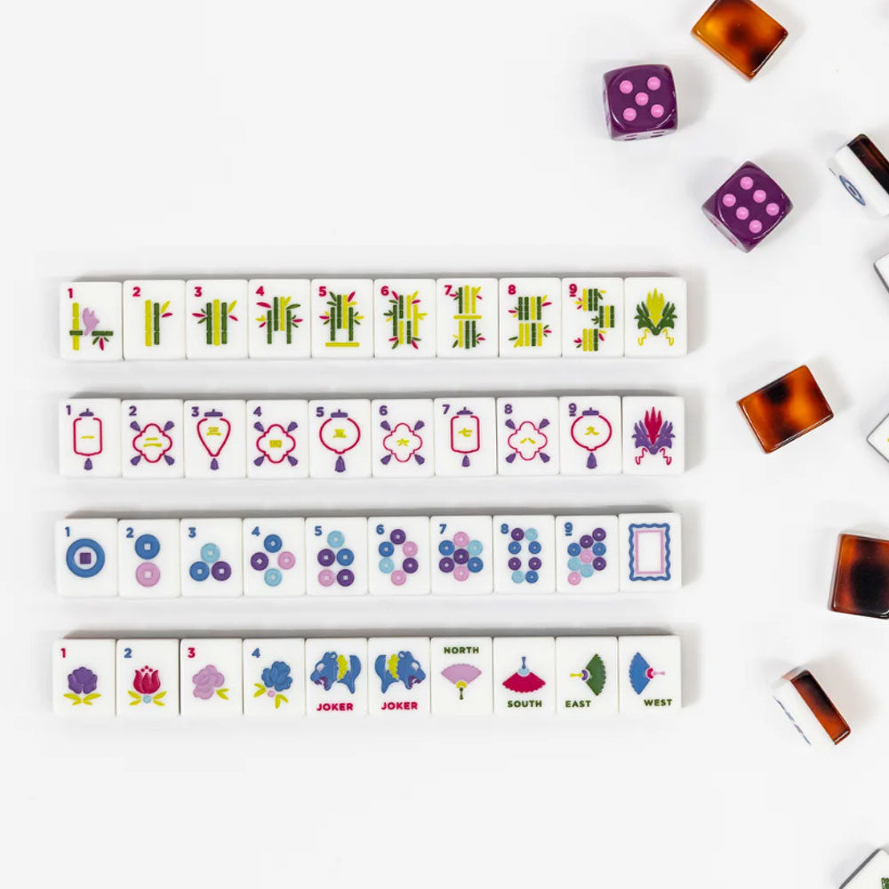 Mahjong on the go has never looked so stylish. This Classic Tortoise Shell Travel Tile Set is the perfect set to take anywhere you want to get your Mahj on. The petite tiles are the perfect travel companion. Luxury acrylic tiles with a layer of tortoise shell acrylic on the back and hand painted custom designs on the face of the tiles. If you need a pretty bag to store them in, make sure you check out this one.