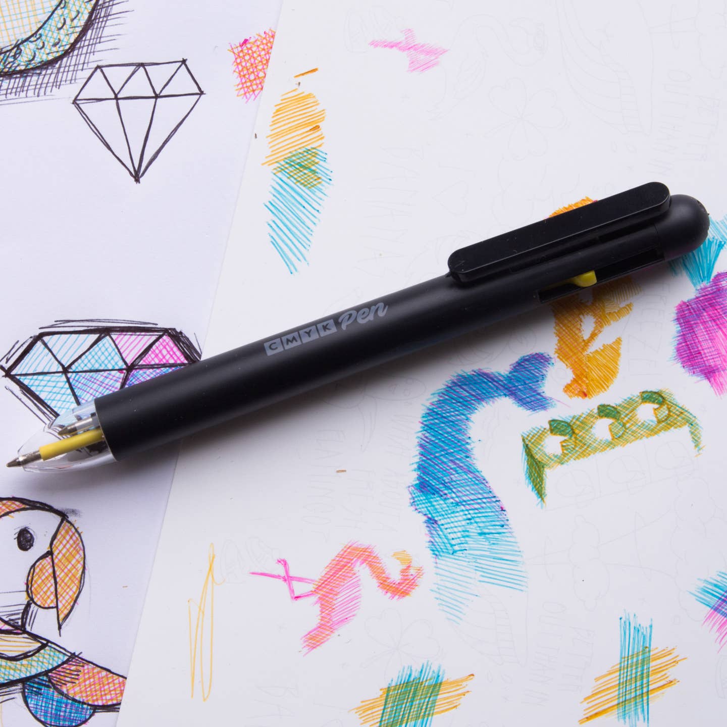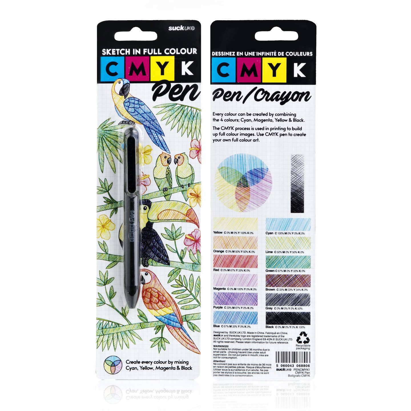 This ink multi-color pen which creates all the colors of the rainbow by mixing and layering the colored ink. Retractable cyan/magenta/yellow/black ballpoints in one pen. Includes a mixing guide on packet. Versatile piece of stationery that can be used for drawing, coloring, scrap-booking, sketching and marking. Colored ink tubes in the clear nib provides visual confirmation. Switch effortlessly between inks with the sliding selectors and be ready to sketch in full color wherever you go.