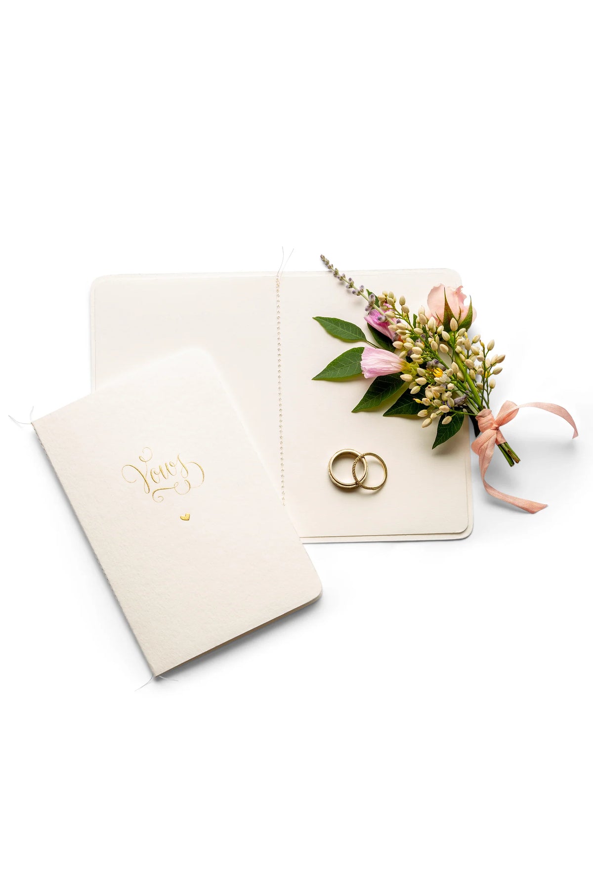 Treasure your wedding Vows forever in the timeless, keepsake Vow Book! This Vow book is simple yet elegant and is designed to be filled with special handwritten words that will hold sentimental value for a lifetime!